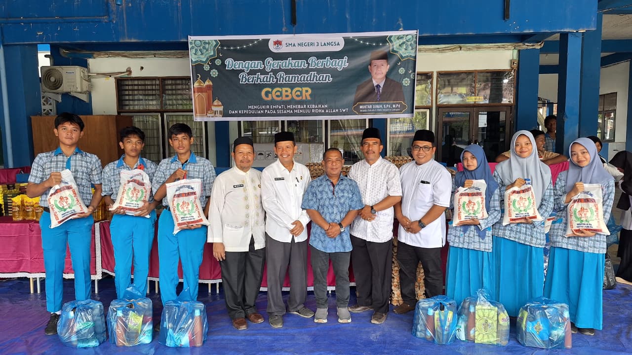 Suasana penuh kebersamaan dan kepedulian terasa di halaman SMA Negeri 3 Langsa pada Jumat, 13 Maret 2026. Sekolah tersebut melaksanakan kegiatan GEBER (Gerakan Berbagi Berkah Ramadhan) dengan tema “Mengukir Empati, Menebar Kebaikan dan Kepedulian pada Sesama menuju Ridha Allah SWT.” Kegiatan ini menjadi salah satu wujud nyata semangat berbagi dan kepedulian sosial di lingkungan sekolah selama bulan suci Ramadhan.