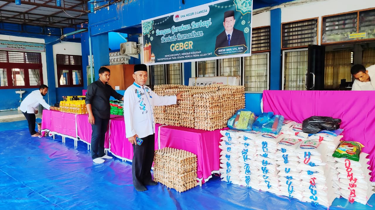 Dalam kegiatan tersebut, pihak sekolah membagikan sebanyak 125 paket GEBER berupa sembako kepada siswa dan tenaga kependidikan (tendik) yang membutuhkan. Paket sembako tersebut terdiri dari: beras, telur, minyak goreng, gula, sirup dan sarung. Paket bantuan ini merupakan hasil dari infak dan sedekah yang dihimpun dari para guru, tenaga kependidikan, siswa, serta wali murid SMA Negeri 3 Langsa. Kebersamaan seluruh warga sekolah dalam mengumpulkan infak ini menunjukkan kuatnya semangat gotong royong dan solidaritas sosial yang terus dijaga di lingkungan SMA Negeri 3 Langsa.